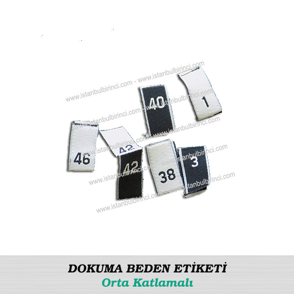 2- DOKUMA Beden Etiketi. Son teknoloji, tam elektronik ve dijital özellikli dokuma makinelerimiz ile, ürünlerinizin hak ettiği kalitede, en prestijli dokuma Beden Etiketlerini üretebiliriz. Dokuma makinelerimiz 8 renk olup Simli İplik, Floresan İplik, Polyester iplik, Akrilik İplik, Pamuklu İplik, Parlak İplik, Mat İplik ya da ihtiyacınıza uygun daha başka her türlü iplik çeşitlerini kullanarak Saten Dokuma, Atkı Saten Dokuma ya da Tafta Dokuma Beden Etiketlerini üretebilmektedir. Talbinize göre Balon Etiket ya da Lazer Kesimli Etiket tarzında da imalat yapılması mümkündür.